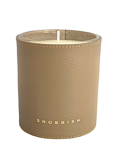 The SNOBBISH candle praises noble materials by dressing in hide-coloured vegetable-tanned leather and revealing an ultra-chic fragrance.